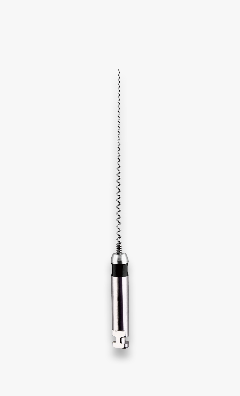 2.使用時順時針旋轉入根管內,螺旋導入根充糊劑,無工作時不會切削根管壁