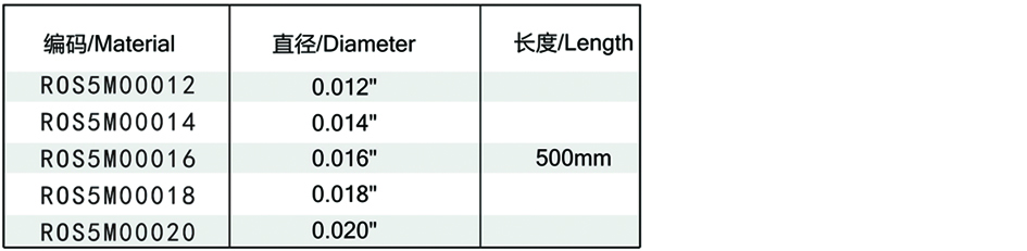 為正畸醫師提供一根長度為5米的超彈性鎳鈦圓絲,可根據臨床需要截取合適的長度進行手工調整,可提供黑色表面和光亮表面兩種。