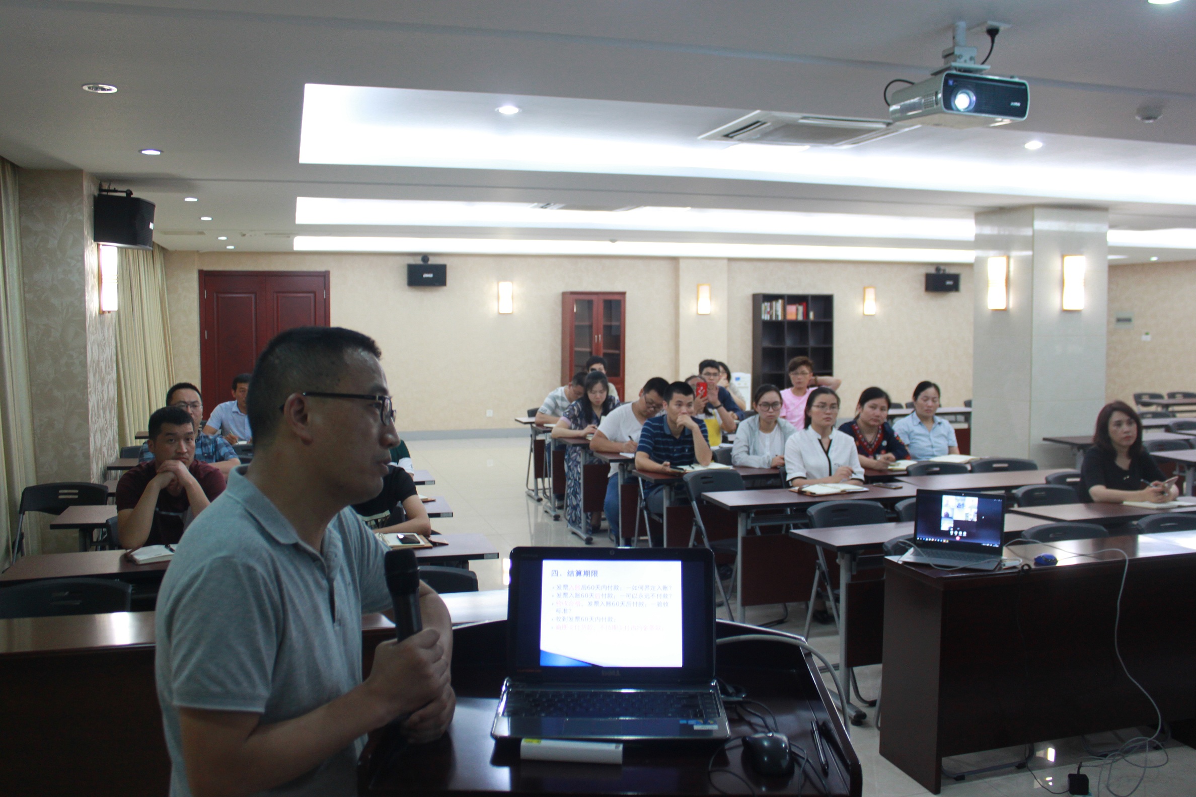 培訓中,財務(wù)部汪總結(jié)合國家政策法規(guī)和公司財務(wù)規(guī)章制度以及實際案例分析,按采購類業(yè)務(wù)、銷售類業(yè)務(wù)、費用類業(yè)務(wù)三個板塊,針對涉稅內(nèi)容、成本管理、合同管理、銷售預估、發(fā)票開具流程及往來賬務(wù)、費用報銷審批和操作規(guī)范等內(nèi)容進行了詳實的講解,讓大家較快地熟悉和掌握財務(wù)工作的基本流程和要求,具體培訓內(nèi)容為:與財務(wù)相關(guān)的銷售流程、確認收入必備條件、結(jié)算方式、結(jié)算期限、對賬開票周期,以及應(yīng)收賬款考核。