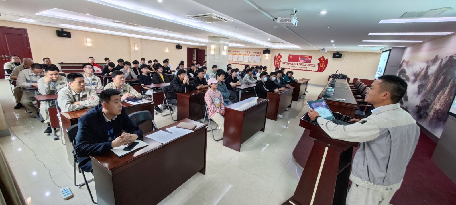 誓師大會(huì),由各事業(yè)部選拔出兩名優(yōu)秀的技能和管理雙人才做為導(dǎo)師,并頒發(fā)聘書和工服,和各自的學(xué)員們拍照合影留念。