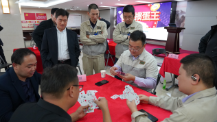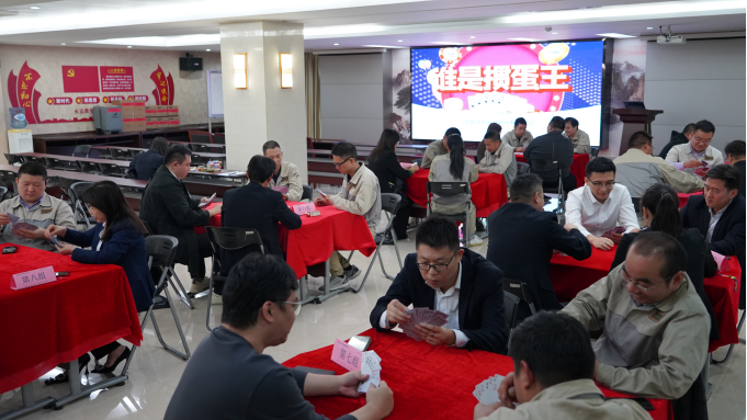接下來的比賽是撲克游戲——摜蛋,這是一場智力與合力的精彩角逐。比賽現(xiàn)場氣氛熱烈,選手們兩兩組合,默契配合,斗智斗勇。牌桌上,牌技與默契的配合是取勝的關(guān)鍵。有的選手深思熟慮,出牌謹慎;有的選手則果斷勇敢,敢于沖鋒陷陣。每一次出牌、每一次決策,都凝聚著選手們的智慧和謀略。搭檔之間相互配合,眼神交流、手勢暗示,心有靈犀,共同應(yīng)對對手的挑戰(zhàn)。現(xiàn)場牌局精彩紛呈,局勢瞬息萬變,選手們在緊張而又愉快的氛圍中享受著摜蛋帶來的樂趣。