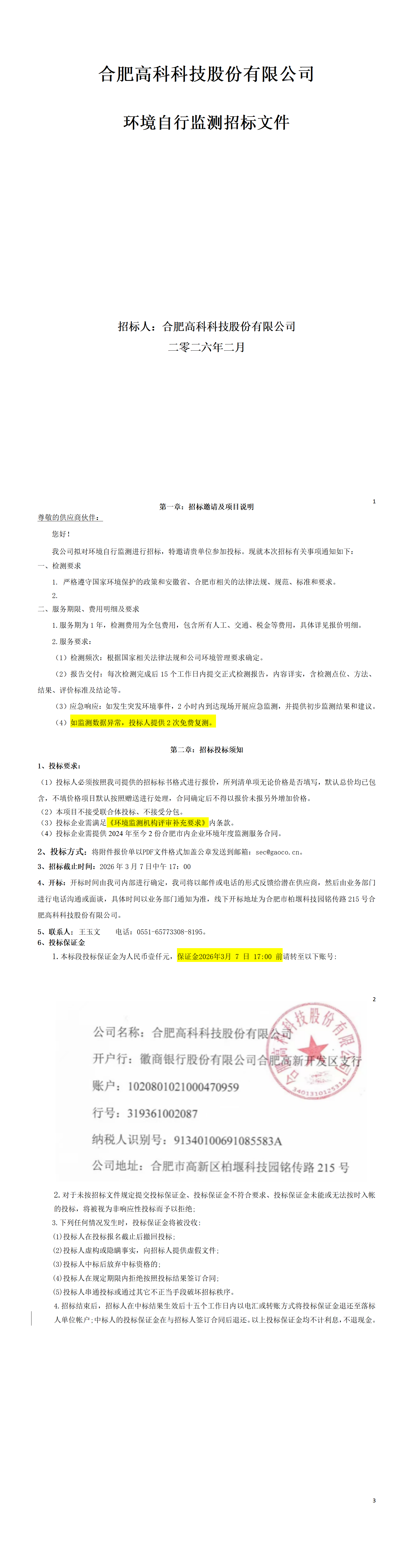 合肥高科科技股份有限公司環(huán)境自行監(jiān)測招標(biāo)文件.pdf